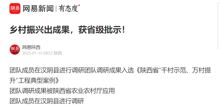 团队调研成果入选《陕西省“千村示范、万村提升”工程典型案例》
