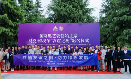 座谈结束后,“国际奥艺委创始主席马克・维埃尔‘友谊之树’冠名仪式”在图书馆前广场举行,象征着双方深厚的情谊和坚实的合作关系,见证未来的携手共进。