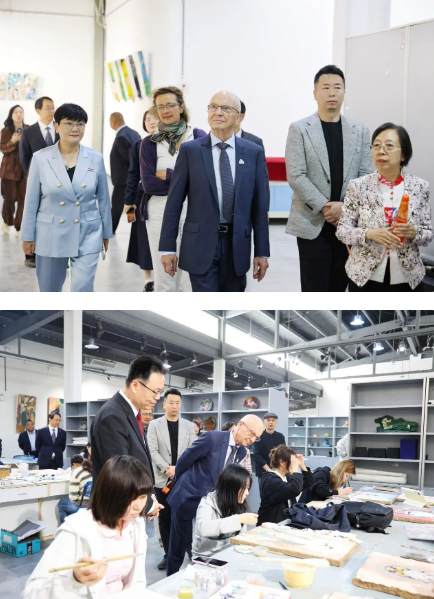 当日上午,马克主席一行参观了西安培华学院维之图书馆(校史馆)等地,深入了解了学校在多领域的发展成果。在培华艺术馆、现代艺术馆以及毕业生作品展内,来宾一行驻足观赏师生作品,对学校在艺术教育领域所取得的成绩赞不绝口,纷纷表示赞叹。