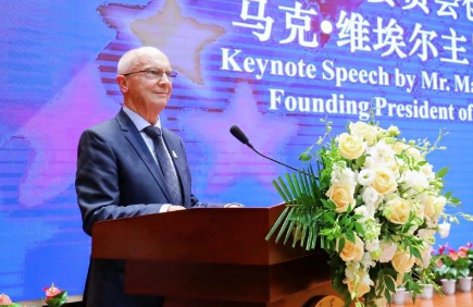 当日下午,马克・维埃尔在图书馆报告厅举行主旨演讲,来自陕西全省艺术及教育领域的众多专家以及西安培华学院师生代表齐聚一堂,共同探讨艺术教育的新方向。会议由罗新远主持。