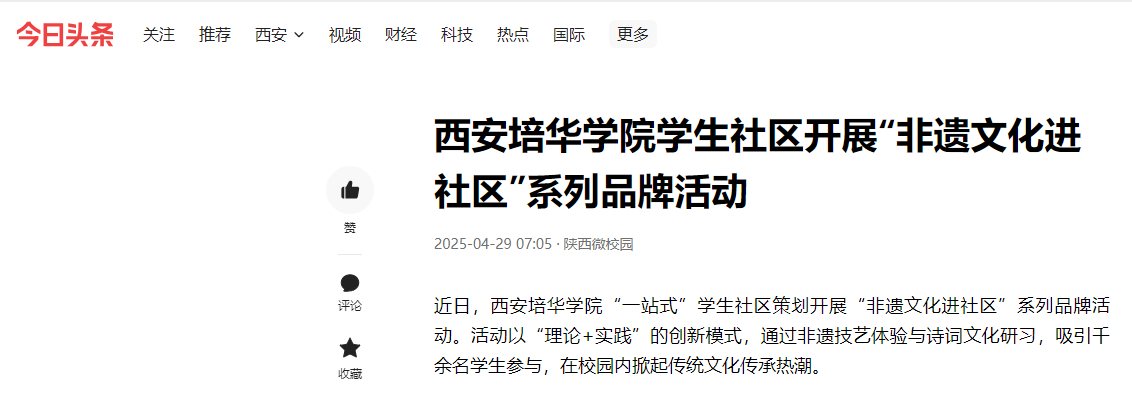 近日,西安培华学院“一站式”学生社区策划开展“非遗文化进社区”系列品牌活动。活动以“理论+实践”的创新模式,通过非遗技艺体验与诗词文化研习,吸引千余名学生参与,在校园内掀起传统文化传承热潮。