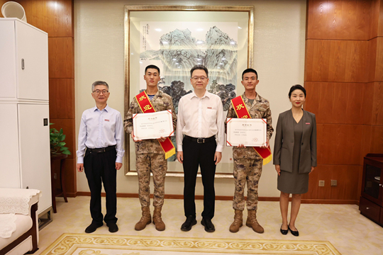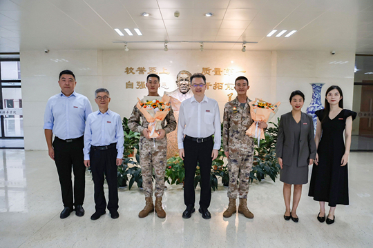 姜波理事长深情表示:“你们在阅兵训练场上挥洒汗水,以铿锵步伐走过天安门广场,不仅展现了新时代军人的风采,更把培华人‘自强不息、开拓前进’的精神带到了祖国的心脏!”他勉励两位校友不忘初心,把部队的优良作风融入今后工作,持续发扬吃苦耐劳、拼搏向上的品质,成为广大青年特别是00后的学习楷模。