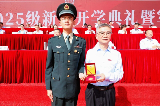 校友代表、九三阅兵预备役方队队员、智能科学与工程学院毕业生胡宗祥以参加九三阅兵的经历为切入点,为新生讲授了弘扬伟大抗战精神的历史意义、抗战精神的精髓和时代内涵。他勉励新生:一是“心中常存家国情”,弘扬伟大抗战精神,从抗日英烈身上汲取前行力量;二是“遇事莫要先躺平”,铭记先辈宁死不屈、血战到底的英雄气概,培养攻坚克难的勇气;三是“在校苦练真本领”,珍视青春年华,锤炼过硬专业素质,用实际行动告慰抗战先烈英灵,在推进中国现代化建设、民族复兴伟业中奋力书写挺膺担当的青春篇章。