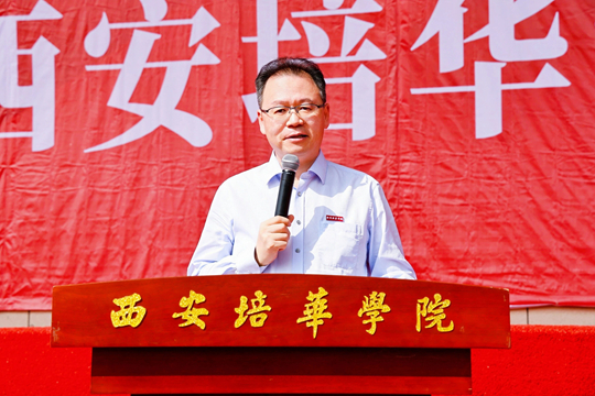 西安培华学院理事长姜波博士深情回顾了培华97年的办学历史,讲述了以姜维之老校长为代表的一代代培华人筚路蓝缕、披荆斩棘的奋斗历程。他指出,跨越近百年风雨、肩负时代使命的培华,用实干交出了一份从“量的跃升”到“质的突围”的时代答卷,在中国民办教育史上书写了浓墨重彩的壮丽篇章。他希望新生培养“利他即利己”的仁者智慧、“大格局大事业”的胸襟格局,强化理论知识学习,同时在实践中开拓视野、增长见识,拥抱新技术,成长为“既要突出专业能力,又要有复合思维”的全面性人才,将不确定未来锻造成确定人生。他最后公布了自己的个人手机号,承诺“有事找波哥”,让这份师生情谊成为学子最坚实的后盾,并鼓励新生将培华作为“跳板”,将知识化为命运之舵,驶向更高、更远、更阳光的未来。