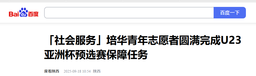 9月3日至9日,2026亚足联U23亚洲杯预选赛西安赛区比赛在新落成的西安国际足球中心举行。在这场历时三天、吸引近9万人次观赛的国际体育盛会背后,来自西安培华学院的452名青年志愿者默默奉献,累计服务超过13000小时,以饱满的热情、专业的服务和坚韧的意志,为赛事顺利举办提供了有力支持。