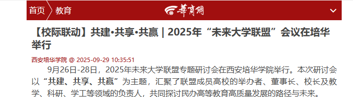 面对AI时代教育形态的深刻变革与民办高校发展的关键转折,2017年,未来大学联盟由西安培华学院、西南财经大学天府学院等7所高校及麦可思数据有限公司共同发起成立,至今已发展成为汇聚13所成员校的高等教育创新共同体。联盟始终高擎“创新、开放、共享”的旗帜,不仅在于促进校际间的资源互通与学分互认,更致力于引领一场面向未来的教育生态变革。通过构建从课程师资共享到科研平台共建、从学生交流互访到联合申报硕士点的全方位协同体系,有力推动成员高校实现从“单兵突进”到“集团作战”的跨越。联盟的实践,精准回应了新时代对高素质应用型人才的呼唤,旨在通过深度融合与智慧碰撞,共同解答民办高等教育高质量、可持续、特色化发展的时代命题,为中国民办教育的转型与升维开辟新路径、树立新范式,标志着中国民办高校正以集群之势,携手迈向协同创新、共塑未来的新阶段。(作者:吕一)