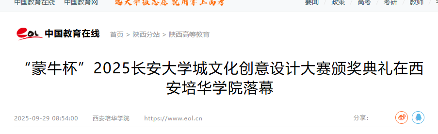 颁奖典礼在热烈庄重的氛围中拉开帷幕。西安培华学院相关负责人在致辞中对区委区政府、蒙牛集团及各支持单位表示衷心感谢。他强调,校地融合、产教协同是推动创意人才培养与文化产业发展的重要路径,培华将继续深化与政府、企业的合作,助力学生创意落地与成果转化。