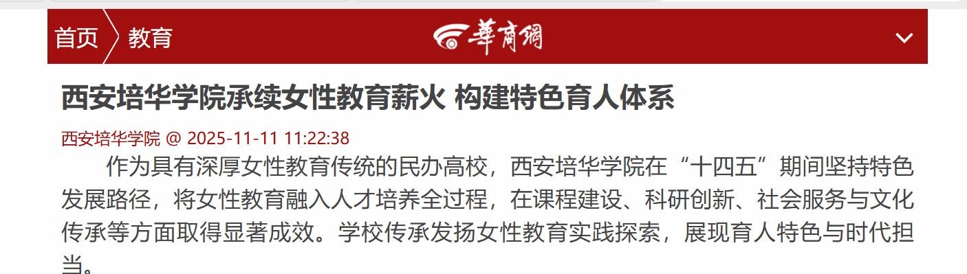 编者按:今年是“十四五”规划收官之年,也是“十五五”规划谋篇布局之年。今日起我们将推出“巡礼十四五”系列报道,系统回顾、全面呈现西安培华学院“十四五”期间取得的主要成就,统一思想共识、凝聚发展合力,为“十五五”规划开局营造昂扬向上的良好氛围。本期推出学校在承续女性教育方面的探索与实践,呈现学校特色育人体系建设的亮点工作。