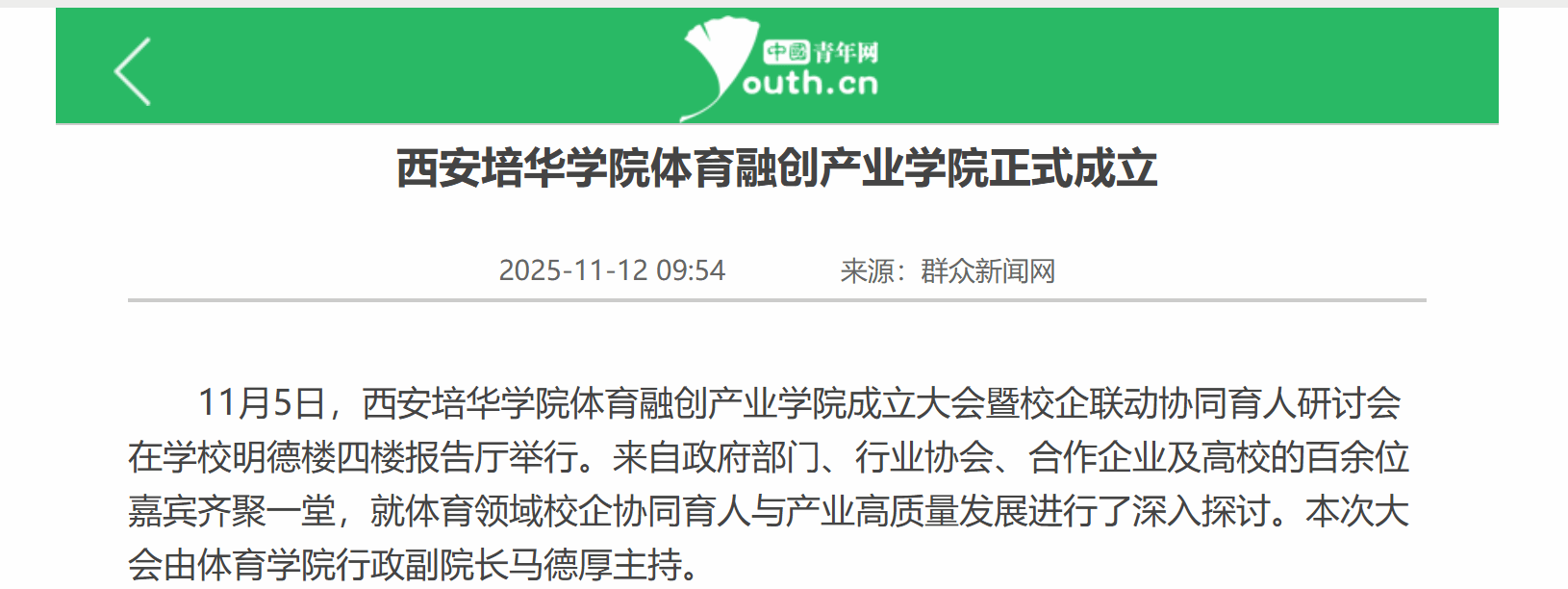 本次体育融创产业学院的成立,不仅是西安培华学院深化教育教学改革的重要探索,更搭建了高校、企业、行业协同发展的新平台。未来,学校将联合更多优质企业与行业协会,围绕课程共建、实习基地建设、行业导师聘任、技能认证培训等方面开展常态化合作,为体育产业培养更多“懂理论、强技能、能实战”的复合型人才,助力陕西乃至西北地区体育融创产业高质量发展。