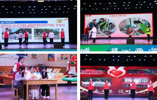 西安“小光团”阳光助残成员的朗诵,讲述了陪伴残障儿童艺术疗愈、户外研学的故事,传递残健同行温情与志愿初心;西安培华学院“七彩假期”爱心托管志愿者的情景剧,生动再现了托管班里的欢声笑语与成长蜕变;西安市第三医院“红细胞”志愿服务队用情景剧的形式讲述了急诊助诊日常,传递医护责任与温度;西安外国语大学“小西树”志愿服务队结合赛会影像讲述多语言赛事保障经历,展现青年志愿服务专业与热情。