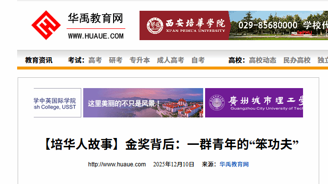 副校长姚文静在赛前,专程为他们舒缓压力,一句“学校是你们最坚实的后盾”温暖了所有人的心。指导老师王朋始终并肩作战,陪着学生一起熬夜打磨,在每一个卡点给予指导。这枚金牌,是学子奋斗的勋章,亦是培华以学生发展为中心、扎实推进创新创业教育改革结出的硕果。