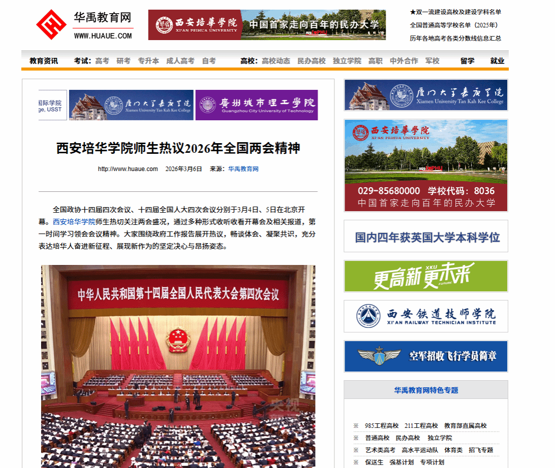 党委书记刘锋表示:2026年全国两会在“十五五”规划开局之年胜利召开,政府工作报告关于教育、科技、人才等领域的战略部署,令人倍感振奋、催人奋进。今后的一段时间里,我们将把学习宣传贯彻两会精神作为当前首要政治任务,坚持社会主义办学方向,落实立德树人根本任务。一是强化党建引领,将两会精神融入“大思政”育人格局,筑牢思想根基;二是深化产教融合,主动对接地方产业发展需求,提升应用型人才培养质量;三是加强师德师风建设,打造高素质专业化教师队伍,以钉钉子精神将两会精神转化为推动学校高质量发展的实际成效。新征程上,培华学院将团结带领全校师生,切实把两会精神转化为干事创业的强大动力,为教育强国建设贡献民办高校的智慧和力量。