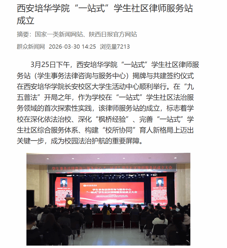 下一步,西安培华学院将依托“一站式”学生社区律师服务站,常态化开展法治主题活动,推动法治教育与专业教育、思政教育深度融合,助力构建平安和谐、法治有序的校园环境,让法治阳光照亮每一位培华学子的成长之路。