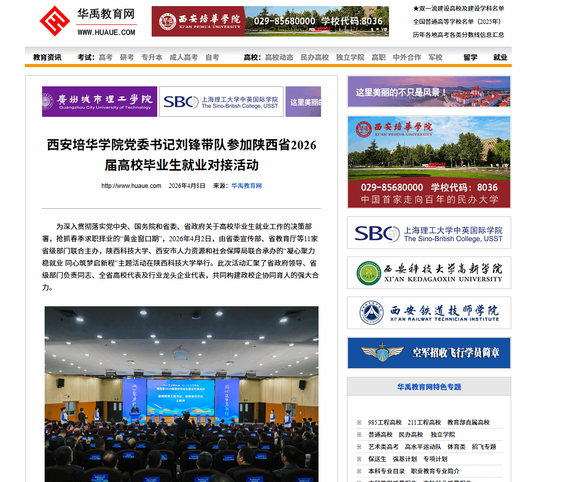 此次省级就业对接活动,是西安培华学院推进2026 届毕业生就业工作的重要举措。下一步,学校将持续深化访企拓岗、优化就业服务、拓宽就业渠道,以更实举措、更优服务全力推动毕业生高质量充分就业,为学生成长成才与地方经济社会发展贡献培华力量。