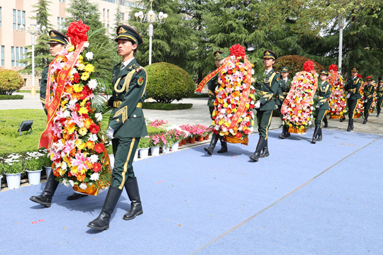 在庄重的敬献花篮环节中,姜波理事长,李映方校长,党委副书记姚文静,工会主席陈玲,亲属代表郝玲玲、姜朗、姜涛,学生代表等分别代表理事会、校务委员会、党委、工会、亲属和全体青年学子敬献花篮,整理绶带、理顺花饰,表达对老校长的深切追思与崇高敬意。