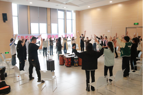 ——举办音乐疗愈表达性艺术心理体验活动。音乐疗法是通过特定的活动设计和音乐体验来消除心理障碍,缓解焦虑和抑郁的情绪,从而达到调整身心平衡的作用。在两位音乐治疗老师的带领下,一场活力动感的非洲鼓音乐团辅以轻松、自由、动感的律动和节奏,通过舞蹈、游戏、敲鼓,帮助同学们放松心情、释放情绪、卸下心理包袱,关爱自我,提高身心素质。在活动的最后,参与者各自用一个词语表达了本次活动的收获和感受:开心、放松、感恩、平静、欣慰……