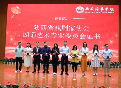 播音与主持艺术专业教师接收陕西省戏剧家协会朗诵艺术专业委员会证书