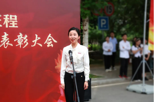 党委副书记、副校长姚文静副教授宣读《关于表彰2022-2023学年优秀共青员优秀共青团干部优秀共青团员标兵先进团支部单项奖先进集体五四红旗团委优秀团务工作者和支持共青团工作好书记(院长)的通报》、《西安培华学院关于表彰2021-2022学年先进班集体、三好学生、优秀学生干部、优秀学长和大学生年度人物的通报》表彰文件。