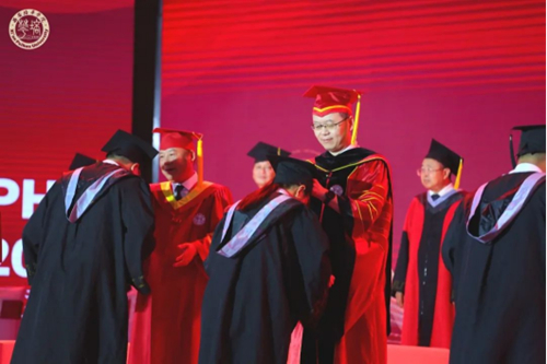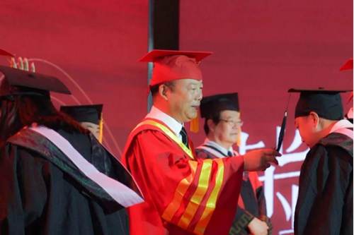校领导为毕业生代表颁发毕业证书、学位证书,并拨穗授礼,送上最美好的祝福。