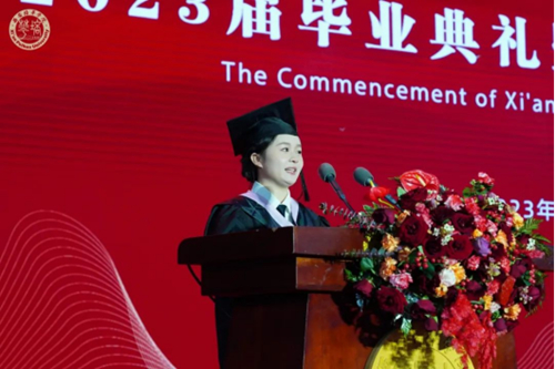 传媒学院新闻学专业2023届学生倪心玉作为毕业生代表发言,她感恩了学校、老师、家人及同学们的奉献与陪伴,她说:初遇培华,追逐梦想,为创建“姜维之班”与同学们共同努力,她的大学生活因此而更加精彩;在老师的引领下,夯实基础,追求卓越,在专业学习和实践中走向成熟,是敬爱的老师们成就了他们的优秀;在暑期三下乡、志愿服务抗击疫情等社会实践中更是学会了责任与担当。她动情地说:我将一生铭记波哥的守护与支持,带着期许从这里启程,奔赴远方的星城大海。最后她与在座的同学们一起用最真诚的掌声为母校送上深深地祝福!