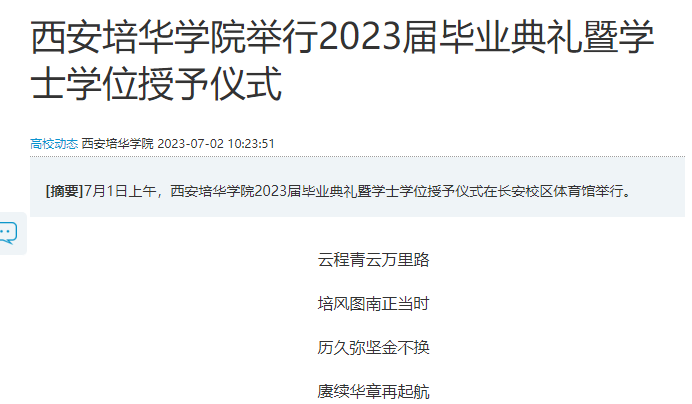 愿此去前程似锦,再相逢依旧如故。西安培华学院2023届毕业典礼至此圆满落下帷幕。