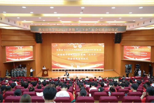 7月4日晚,西安培华学院在维之图书馆报告厅举行了2023年暑期“三下乡”社会实践活动出征仪式。校党委副书记、副校长姚文静,党委学工部部长、学生服务中心主任蔡亮,教务管理中心副主任刘斌,党委宣传部副部长霍元敏,党委学工部副部长、学生服务中心副主任权勇太,女子学院副院长班理,校团委书记杨媛,校团委副书记王冰,智能科学与信息工程学院学业导师代表胡亚维,各二级学院党委(党总支)书记、副书记,团委(团总支)书记、副书记,学生会及青协指导老师,三下乡社会实践校级立项团队指导老师代表,以及各实践团队代表共计400余人参加会议。