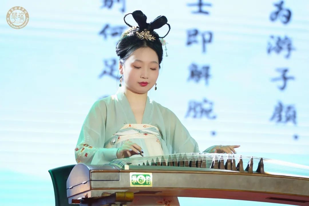 毕业典礼最后,由人文与国际教育学院和传媒学院教师带来的古乐吟诵节目《翻作别离歌与诸学子共勉》,在时空穿越中,用音乐彰显培华女性教育的魅力,感受中华传统文化的韵律,传递培风图南的祝福。