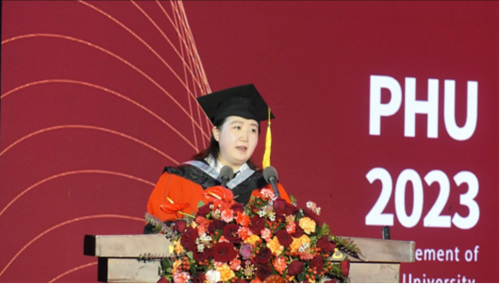 7月1日上午,西安培华学院2023届毕业典礼暨学士学位授予仪式在长安校区体育馆举行,全体校级领导、学位委员会委员、教师代表、辅导员代表、毕业生家长代表、校友代表以及2023届毕业生代表2000余人共同见证这一特殊而又神圣的毕业时刻。