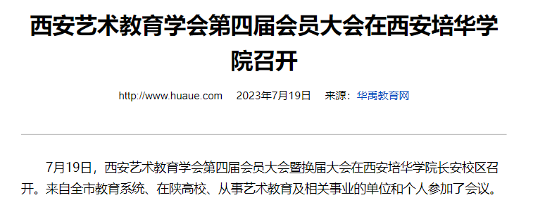 7月19日,西安艺术教育学会第四届会员大会暨换届大会在西安培华学院长安校区召开。来自全市教育系统、在陕高校、从事艺术教育及相关事业的单位和个人参加了会议。