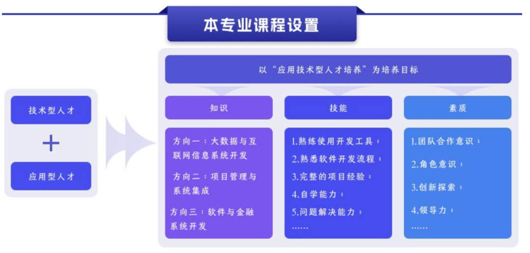 培养方向:大数据与互联网信息系统开发;项目管理与系统集成;软件与金融系统开发。