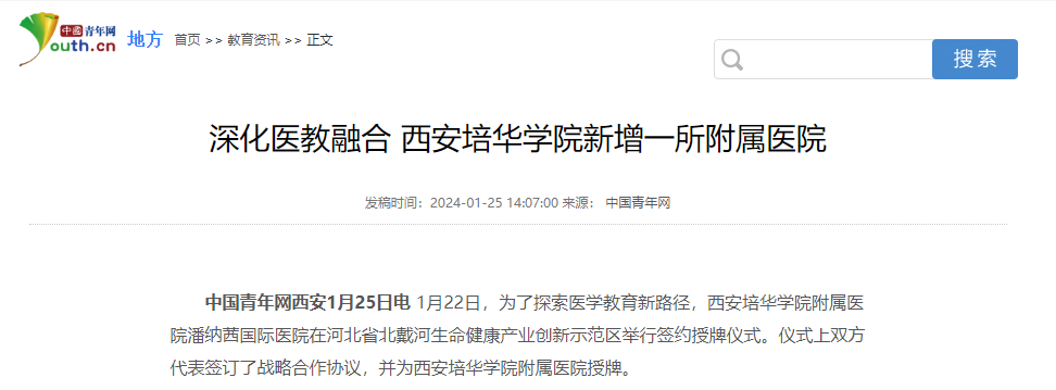 据悉,2023年9月17日,秦皇岛市委书记王曦、副书记张淑云与西安培华学院理事长姜波、正大集团执行副总裁洪波一行举行了工作座谈,已就进一步深化沟通对接、携手共谋发展进行了深入交流。潘纳茜国际医院院长刘广贤在访问培华期间被任命为学校再生医学与精准免疫健康中心主任。