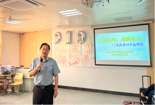智能科学与信息工程学院在育英楼开展了教师节慰问活动。活动伊始,院长程国建向老师们表达了学院的关心,送上节日的祝福,并对他们为教育工作做出的贡献表达了衷心的感谢。常务副院长成立表示:作为一名老师,我们必须牢固树立“躬耕教坛、强国有我”的志向和抱负,坚守三尺讲台,潜心教书育人,以自己的行动践行教师使命与担当。