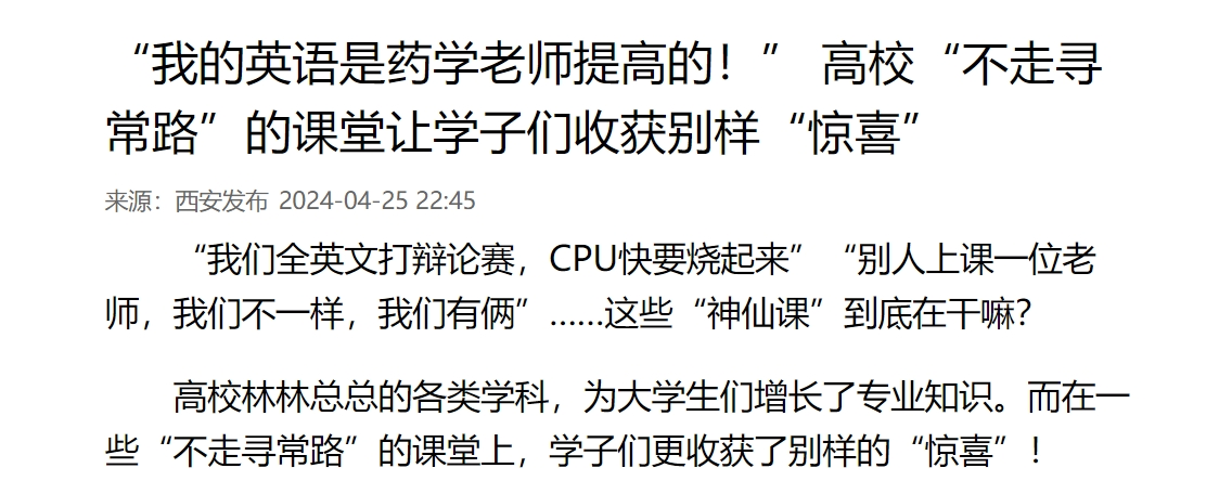 “谁能想到,我的英语成绩竟然是药学专业老师提高的。”西安培华学院21级药学专业杨欣悦说,他学的《药物化学》这门课是双语教学。