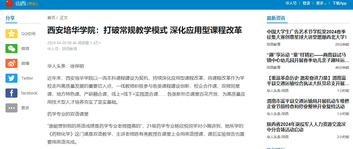 近年来,西安培华学院以一流本科课程建设为契机,持续深化应用型课程改革,将课程改革作为学校走向高质量发展的重要切入点,一线教师积极参与各类课程建设创新,校企合作课、双师同堂课、地方特色课、产研融合课,线上+线下+实践混合课……各类新形态课堂百花齐放,为高质量应用技术型人才培养夯实了坚实基础。