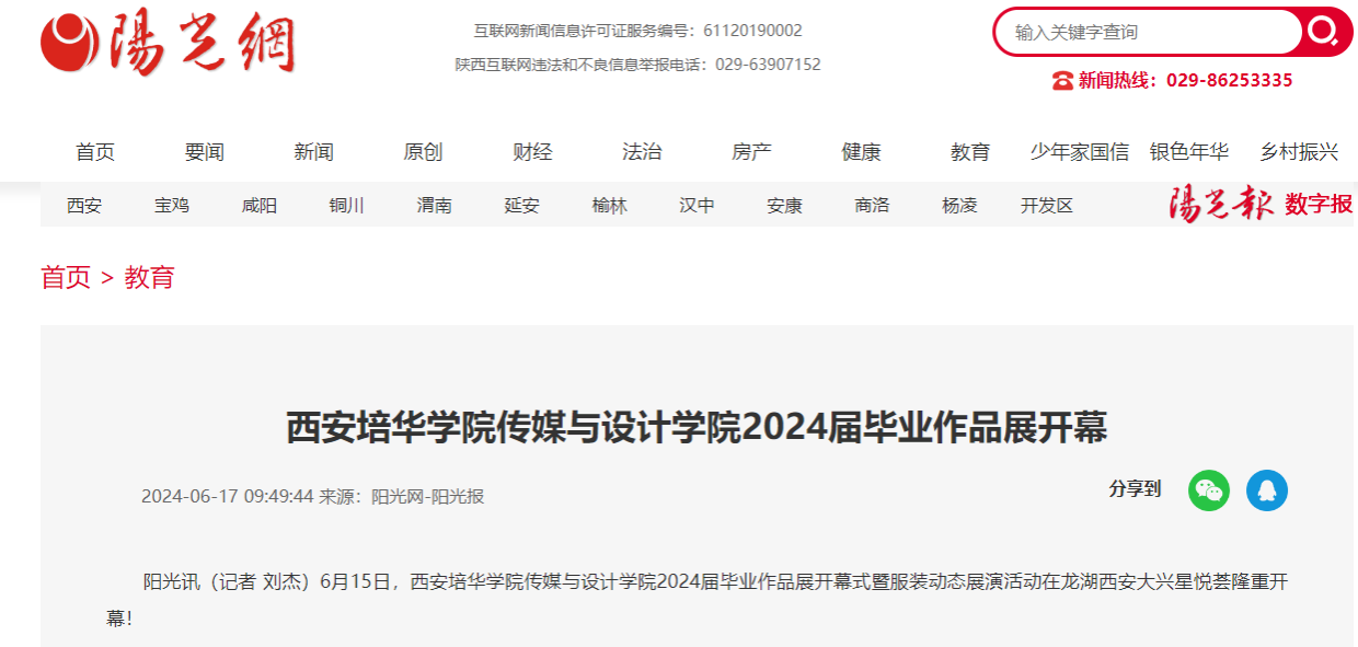 阳光讯(记者 刘杰)6月15日,西安培华学院传媒与设计学院2024届毕业作品展开幕式暨服装动态展演活动在龙湖西安大兴星悦荟隆重开幕!