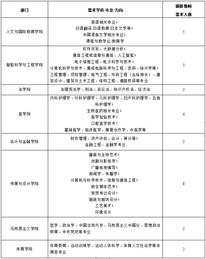 2024年我校面向社会公开招聘银龄教师岗位及需求人数见下表: