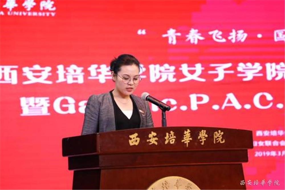 陕西省妇女联合会巡视员冯屹首先代表省妇联对培华学院的女性教育工作表示肯定,她讲到,培华学院建立的女子学院,是致力于女性教育、科研、实践,这为我省妇女教育事业贡献了重要经验。她希望女子学院全体同学们刻苦学习,不断练就过硬本领,服务祖国建设。