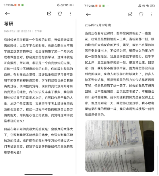 站在本科生涯的终点回望,陈亚情最想分享的不是成功经验,而是成长感悟:第一,叩问初心:“你是真得想考研,还是害怕就业?”第二,拒绝盲从:“选择学校和专业时,要画好'能力圈'和'兴趣圈'的交集。”第三,拥抱多元:“人生不是单行道,考研成功与否,都不是终点。”她的经历,早已让她具备应对变化的能力——这种能力,比一张录取通知书更珍贵。