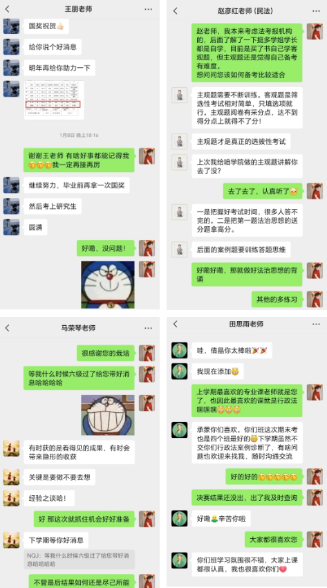 每次获奖后,总少不了对师长的感谢:“韩院长逐页指导PPT,不仅校正内容,还耐心帮我梳理个人优势,教会我更清晰地认清自我;江欣燕老师如春风化雨,耐心解答每个困惑;王朋老师常伴我们挑灯夜战,不言辛苦;赵彦红老师以魅力课堂点燃我对法学的热爱;田思雨老师温柔体贴,处处为学生考量;马荣琴老师倾囊相授,激励我敢于尝试……是他们一次又一次点亮着我。”提起老师们的栽培和帮助,倪倩晶满怀感恩。