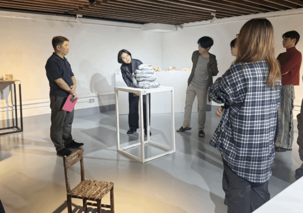 在“竹材工艺”课上,从刮青、剖竹到编织,他学习“向竹子学习”,亲手完成一件蕴含自然温度的竹编作品。在“陶瓷毕业设计”课上,他更是见证了陶瓷如何超越“器皿”的范畴,成为个人情感与观念表达的载体。