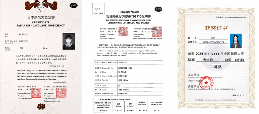 日语专业获奖证书(部分)