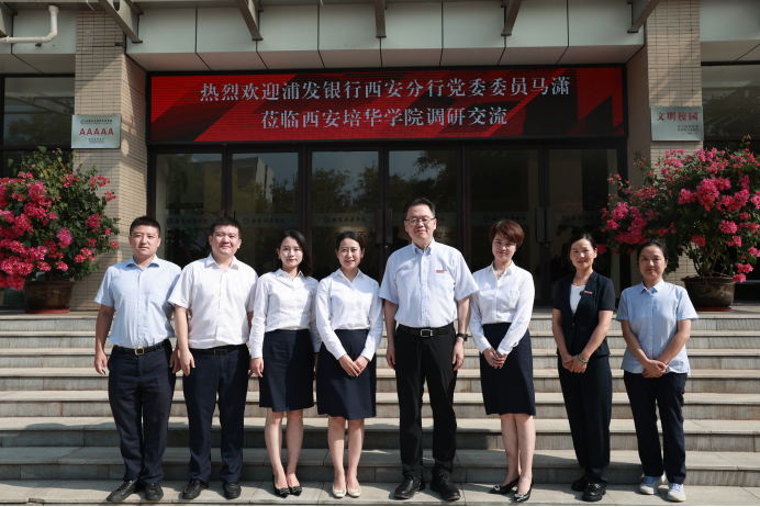 9月4日上午,浦发银行西安分行党委委员马潇一行来校调研交流。我校理事长姜波、财务总监薛清陪同交流。
