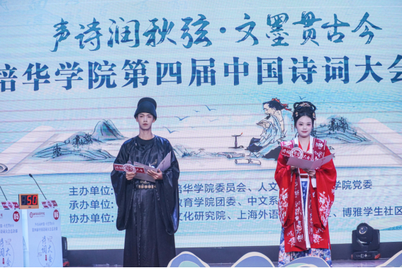 人文与国际教育学院院长梁蕊在致辞中表示,诗词作为心灵的流露与情感的载体,为我们民族文化绘就了辉煌的一笔。她强调,举办诗词大会不仅寄托了培华师生对诗词文化的深厚情感与崇高敬意,也蕴含了国家和学校对青年一代寄予的殷切期望。