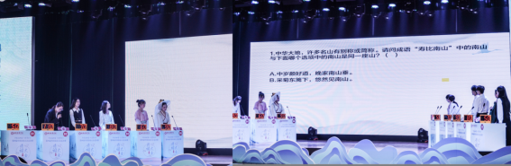 在诗词接龙环节,选手们争先恐后,向大家展示了深厚的文学功底;在诗词连连看环节,选手们当机立断,这一环节不仅考察诗词积累,更是对眼力和决断的双重挑战;在飞花令环节,选手们妙语连珠,该环节不仅考察选手的诗词储备,更是临场反应和心理素质的较量。在文学常识知多少环节,选手们斗艳争辉,这一环节让观众见识到了诗词背后的广阔天地。上半场的精彩角逐,为在场的观众带来了一场别开生面的诗歌盛宴。