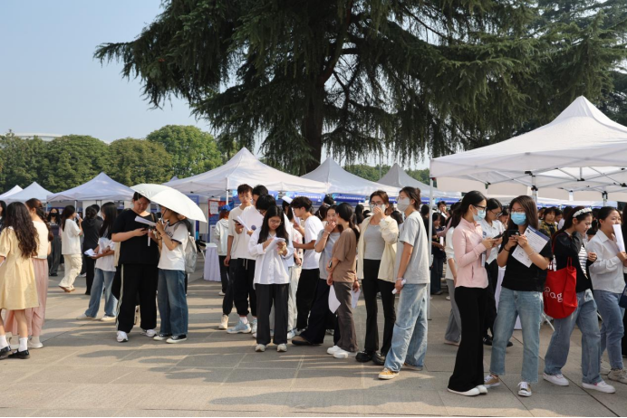 为充分发挥校园人才资源优势,促进西渭地区经济的融合与发展,在毕业生与用人单位之间、地区与地区之间搭建有效沟通平台,9月24日上午,金秋招聘月—2024年西渭融合发展秋季联合招聘会在西安培华学院长安校区五棵松运动广场举办。