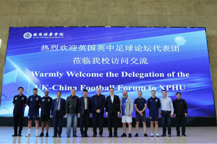 10月28日,英国英中足球论坛代表团一行莅临西安培华学院参观交流访问,并于体育场举办欢迎仪式。英中足球论坛代表团团长,英国Stockport County足球俱乐部总裁Steve Bellis、英中足球论坛访华足球队主教练,前著名曼联前锋Brian McClair、英国职业足球球员联合会教育主管,前职业足球球员Oshor Williams、英国Kickworldwide公司总经理Steve Cartwright、英国Stockport County足球俱乐部教育主任Bob MacCallum、青训主管Richard Chapman、英中足球联合发展中心董事长刘凯祥、总经理高维嘉、国际项目经理刘博及其他英国英中足球论坛代表共50人与西安培华学院理事长姜波、国际校长李华、监事会主席,校体育委员会主任徐国富、体育学院院长王志强出席了在体育馆举行的隆重而热烈的欢迎仪式。体育学院师生代表参会。国际交流中心主任王鹏主持欢迎仪式。