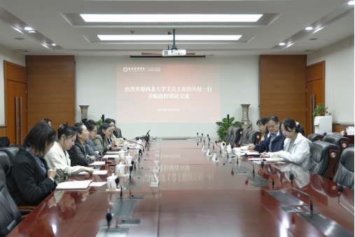10月28日上午,西北大学工会主席田兵权一行来校调研交流妇联建设情况,座谈会在明德楼第一会议室举行。会议由校妇联执委、党委学工部副部长杨媛主持,校妇联执委参加交流会。