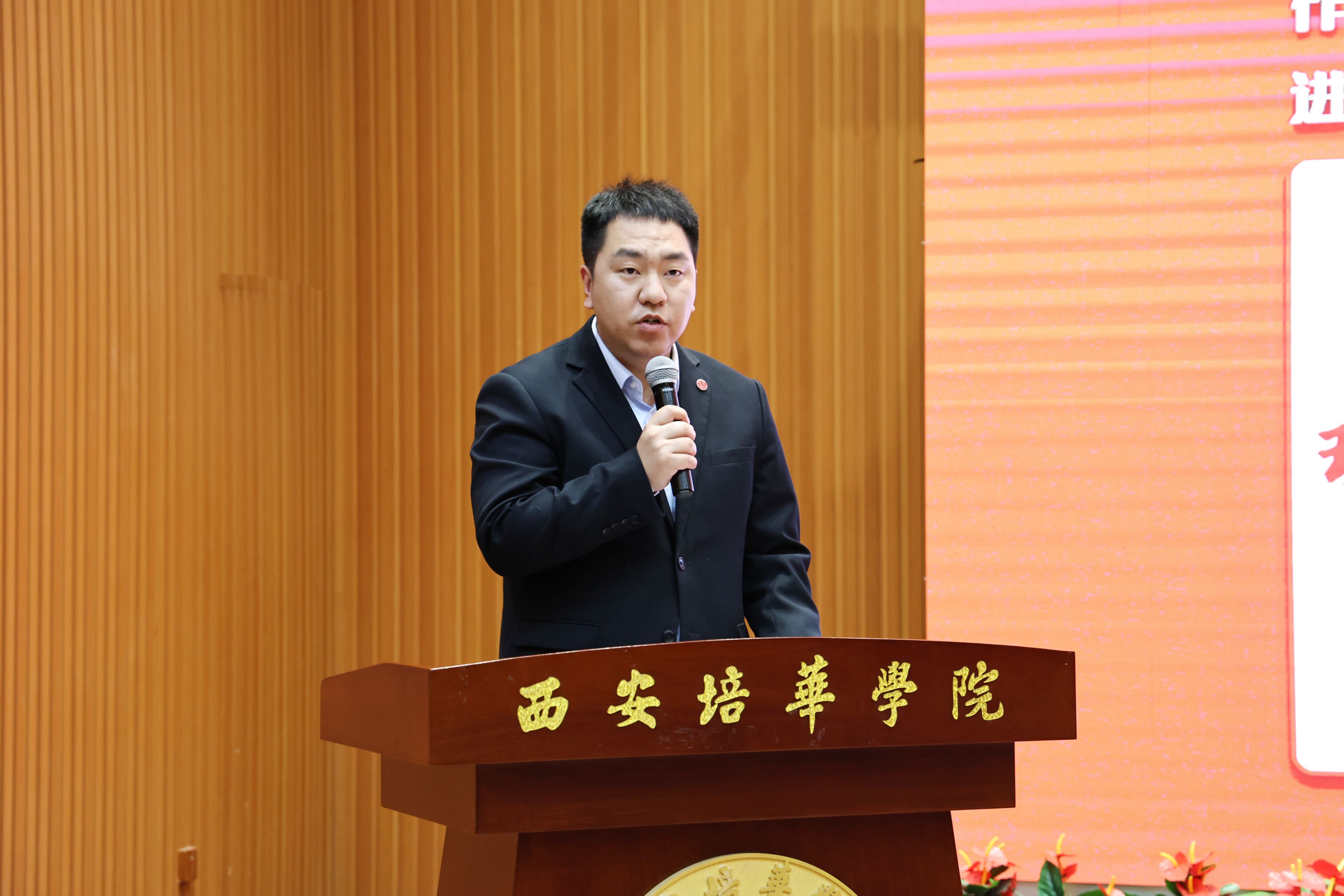 校团委书记董莹老师宣读《西安培华学院关于表彰2025年寒假“五育并举”返家乡系列社会实践活动优秀组织单位、示范(标兵)团队、优秀指导教师、先进个人的通报》。