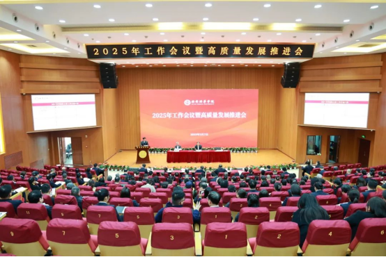 本次大会是在贯彻落实全国教育大会和全省教育大会精神,立足“十四五”收官与“十五五”谋篇布局的历史节点上,在构建立德树人新格局、重塑特色发展新生态、奋力推进高质量建设的历史机遇期召开的一次意义深远、影响重大的会议。理事长姜波围绕应对人口变化与社会发展,系统分析了市场与产业发展趋势,重点对产教融合、教育教学改革、教师队伍培养、“一院一策”等作了系统安排。校长李映方聚焦“一条主线,五项重点任务”,从十大方面40项具体内容做了全面部署。党委书记刘锋就如何落实大会精神做了详细要求。大会的召开标志着2025年学校高质量发展的任务书已下达、路线图已绘制、时间表已明确、“新赛道”已开启、奋楫笃行的号角已吹响,一幅活力四射、精彩无限、奋进新征程的多彩画卷正徐徐铺展……
