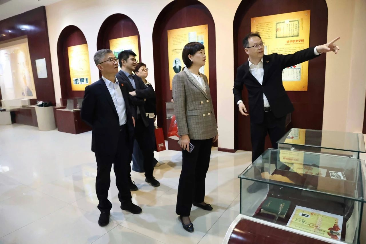 活动结束后,与会领导参观了现场展板展览,走访了校史馆、天安门建党百年庆典红旗,深入地了解了学校办学沿革及红色教育。